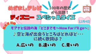 ディズニー 今日のめざましテレビ ディズニースペシャルクイズ モアナと伝説の海『空と海が出会うところは?』|12月4日 海に愛された少女モアナが伝説の英雄マウイと出会い世界を救う冒険に出る「モアナと伝説の海」。めざましテレビ ディズニースペシャルクイズ 『空と海が出会うところは?』 2024.12.04 ディズニー