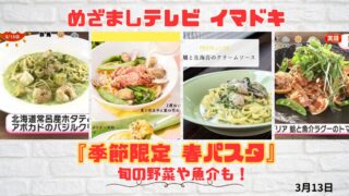 イマドキ めざましテレビ 『季節限定 春パスタ』旬の野菜や魚介も!今日のイマドキ|3月13日 春の陽気にぴったりなイタリアンのパスタ。贅沢に旬の野菜や魚介をたっぷり使った、お店のこだわり詰まった春限定パスタをチェックします。 2025.03.13 イマドキ