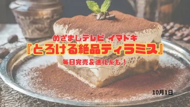 イマドキ めざましテレビ 毎日完売&進化系も!『とろける絶品ティラミス』人気カフェでも楽しめる 今日のイマドキ|10月1日 今日のめざましテレビ イマドキ 毎日完売&進化系も!『とろける絶品ティラミス』が紹介されました。ティラミスといえばイタリア発祥の定番ドルチェ。いま東京では“進化系ティラミス”が次々と登場し、完売必至の人気を集めています。今回チェックするのは... 2025.10.01 イマドキ食べる