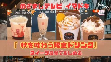イマドキ めざましテレビ スイーツ感覚で楽しめる『秋を味わう限定ドリンク』今日のイマドキ|10月9日 肌に感じる風が少しずつ冷たくなり、甘い香りのドリンクが恋しくなる季節。今回は、見た目も味もスイーツのように楽しめる“秋限定ドリンク”を4つ紹介します。りんご、焼き芋、栗、みたらし団子…それぞれの素材が個性を放ちながら、飲むたびに秋の深まりを感じさせてくれる一杯です。 2025.10.09 イマドキ食べる