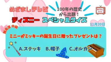 Disney めざましテレビ King & Princeが出題するディズニークイズ「ミニーがミッキーの誕生日に贈ったプレゼントは?」|11月20日