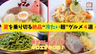 盛岡冷麺、しらすとレモン香るペペロンチーノ、磯のわかめ麺、冷やし二郎系まぜそばを紹介。水上恒司さん最新映画トークも!8月9日【キクエがキクヨ】は夏を乗り切る絶品“冷たい麺”グルメ4選!水上恒司さんが堪能