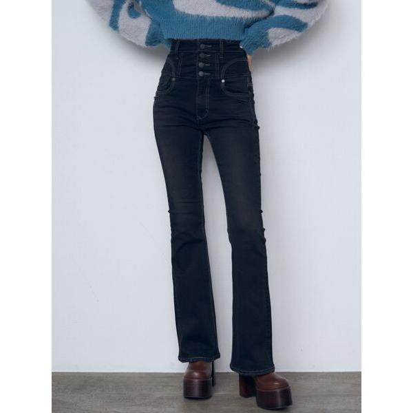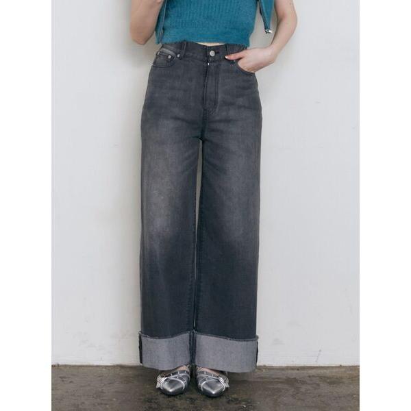 ハイウエストのデニムを組み合わせれば、よりカジュアルな装いで脚長効果も。