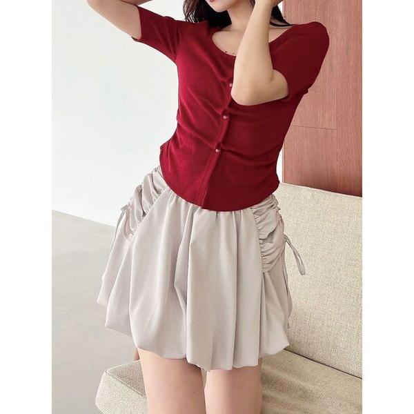 イマドキガールのコメント:バルーンスカートがふんわりとしたシルエットでガーリーな印象になりますよ。
