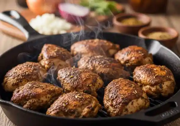 鶏もも肉にまぶして焼くだけで、香ばしいスモーク風味のジャマイカンチキンに。