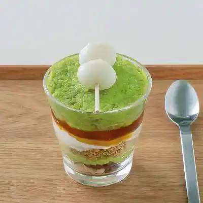 枝豆とちゃ豆をブレンドしたずんだ餡に、みたらし餡・クリーム・アイス・シフォンケーキを重ねた贅沢なパフェです。