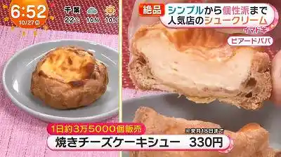 1日約3万5000個を売り上げるという「焼きチーズケーキシュー」は、名前の通り“焼く”ことで香ばしさをプラスした新感覚のシュークリーム。