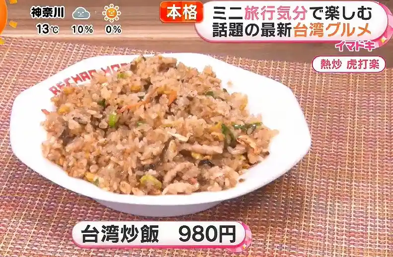 中目黒の駅近く、一歩足を踏み入れるとそこはもう台湾の市場!ネオンが輝くレトロでポップな空間が広がる「熱効 虎打楽(ルーチャオ ホダラ)」です。ここでぜひ味わってほしいのが、香ばしさがたまらない台湾炒飯。