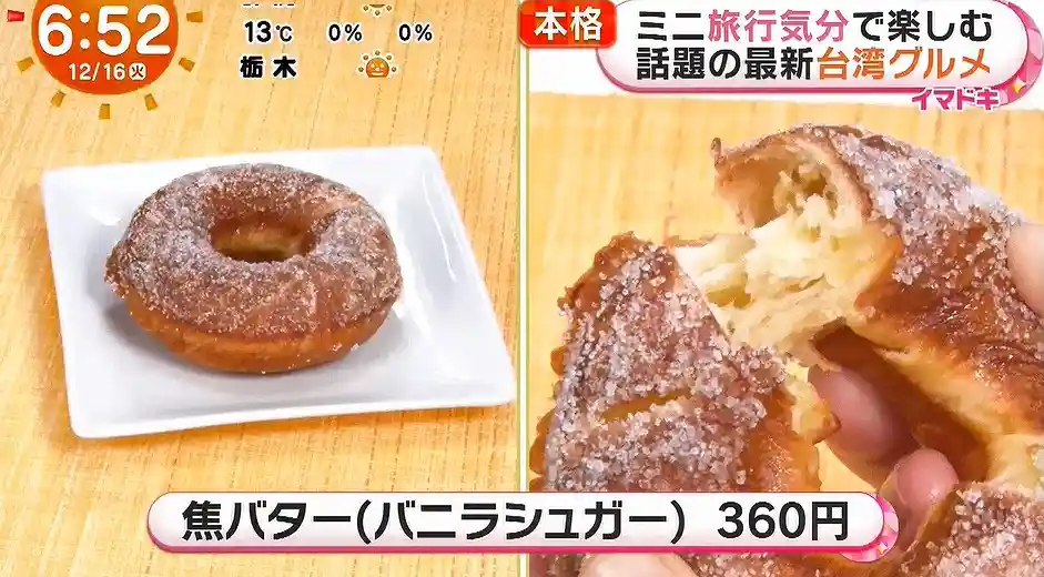 一番人気の「焦バター」は、ミルク風味のクロワッサン生地を約1時間熟成させ、専用のベーカーで焼き上げた「焼きクロワッサンドーナツ」。最大の特徴は、仕上げにまぶされた「冬瓜(トウガン)シュガー」です。冬瓜を砂糖で煮詰めて結晶化させたもので、ガツンとした甘さではなく、丸みのある優しい甘さが特徴です。