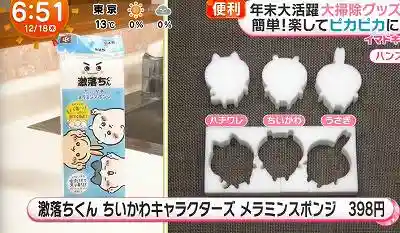 お掃除中も癒やされたい!「激落ちくん ちいかわキャラクターズメラミンスポンジ」:398円