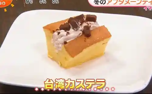 注目は、ふわっふわの台湾カステラです。上品な紅茶クリームと、ミルク感たっぷりの生チョコ(カカオ28%)がトッピングされていて、口の中で優しくとろけ合います。チョコ粉末のザクザクした食感がアクセントになっていて、最後まで飽きさせません。