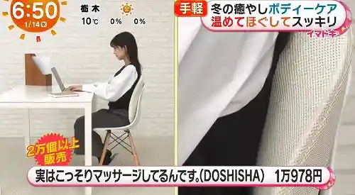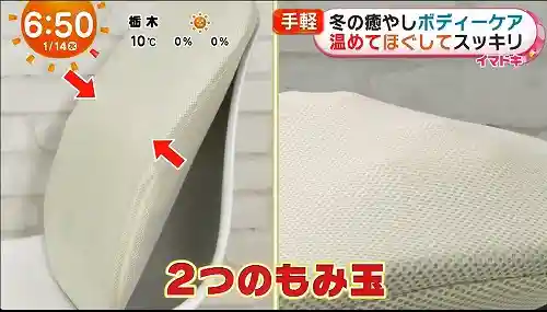中には2つの揉み玉が入っていて、回転しながら腰から背中までをしっかり揉みほぐしてくれます。すでに2万個以上売れている大ヒット商品で、デスクワーク中に使っていても周りからはただクッションを置いているようにしか見えません。「勉強中に腰が重いな…」なんて時も、これがあれば姿勢を保ちながらリフレッシュできちゃいます。