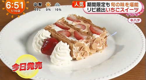 今日のめざましテレビ イマドキ 旬を堪能タルト&パイも『リピ続出いちごスイーツ』が紹介されました。