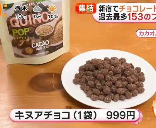 コロンビアから出店のカカオハンターズではスーパーフード「キヌア」を使った一品。サクサクのキヌアパフをダークチョコでコーティングした、スナック感覚のショコラです。ちょっぴりビターでフルーティー、そして軽い食感なので、ついつい手が止まりません。1,000円以下で買えるので、自分への気軽なご褒美にぴったりですね。