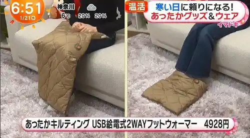 あったかキルティング USB給電式2WAYフットウォーマー 4928円