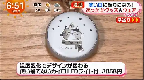 温度変化でデザインが変わる 使い捨てないカイロ LEDライト付 3058円