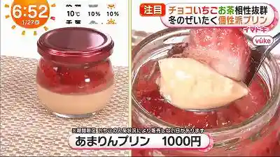 今日のめざましテレビ イマドキ チョコ×いちご×お茶が止まらない!限定『冬のぜいたく個性派プリン』が紹介されました。