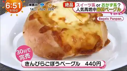 今日のめざましテレビ イマドキ スイーツ系orおかず系?『人気再燃中 最新ベーグル』が紹介されました。