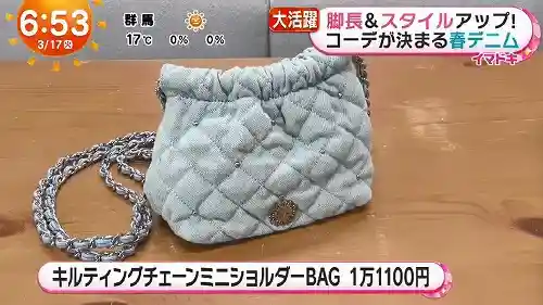 「キルティングチェーンミニショルダーバッグ」はデニム素材のバッグですが、キルティングデザインが取り入れられているため、どこかレディーライクな雰囲気が感じられるのが特徴。ミニサイズなので春先のお出かけにぴったりで、軽やかなコーデにもよくなじみます。カジュアルなデニムコーデに合わせても程よいアクセントになり、シンプルな装いをさりげなく引き立ててくれます。