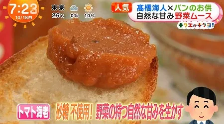 砂糖を使わず、野菜本来の自然な甘みで作られたヘルシーなパンのお供です。