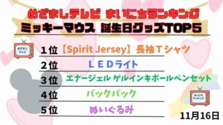 クール&キュート!今年限定のアイテム。11月16日のめざましテレビのまいにちランキングはディズニーストア『ミッキーマウス 誕生日グッズTOP5』