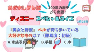 『美女と野獣 ベルが持ち歩いている大好きなものは?』3月28日めざましテレビ ディズニースペシャルクイズ