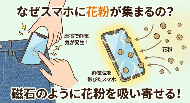 【なぜスマホが1位なの?】 最大の理由は「静電気」です。 画面を指でスワイプする際の摩擦や、ポケットからの出し入れで、スマホは常に強力な静電気を帯びています。これが空気中の花粉を「磁石のように」吸い寄せてしまうのです。