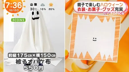 かぶるだけで完成する「お化けの布」など、手軽に楽しめるアイテムがいっぱい。