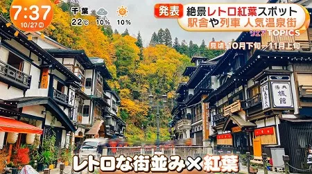 今日、10月27日のめざましテレビ シェアトピは、『レトロ紅葉スポットランキング』が紹介されました。