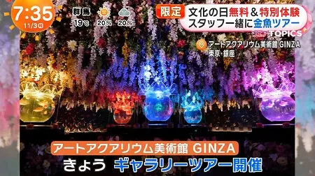 東京・銀座の「アートアクアリウム美術館 銀座」では、約3,000匹の金魚が光と音の幻想的な演出の中を泳ぐ、事前予約制のギャラリーツアーを本日限定で実施。