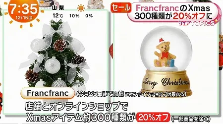 🎁 フランフラン|クリスマスアイテムが一律20%オフ