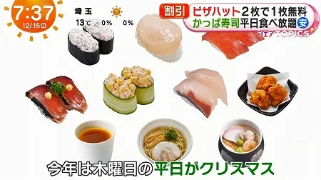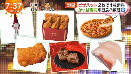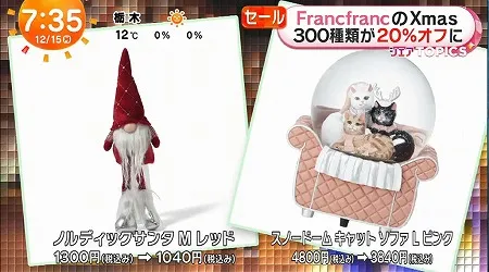 今日、12月15日のめざましテレビ シェアトピは、『今から間に合うXmasお得セール&キャンペーン』が紹介されました。